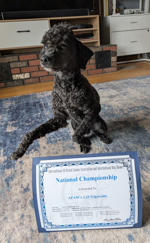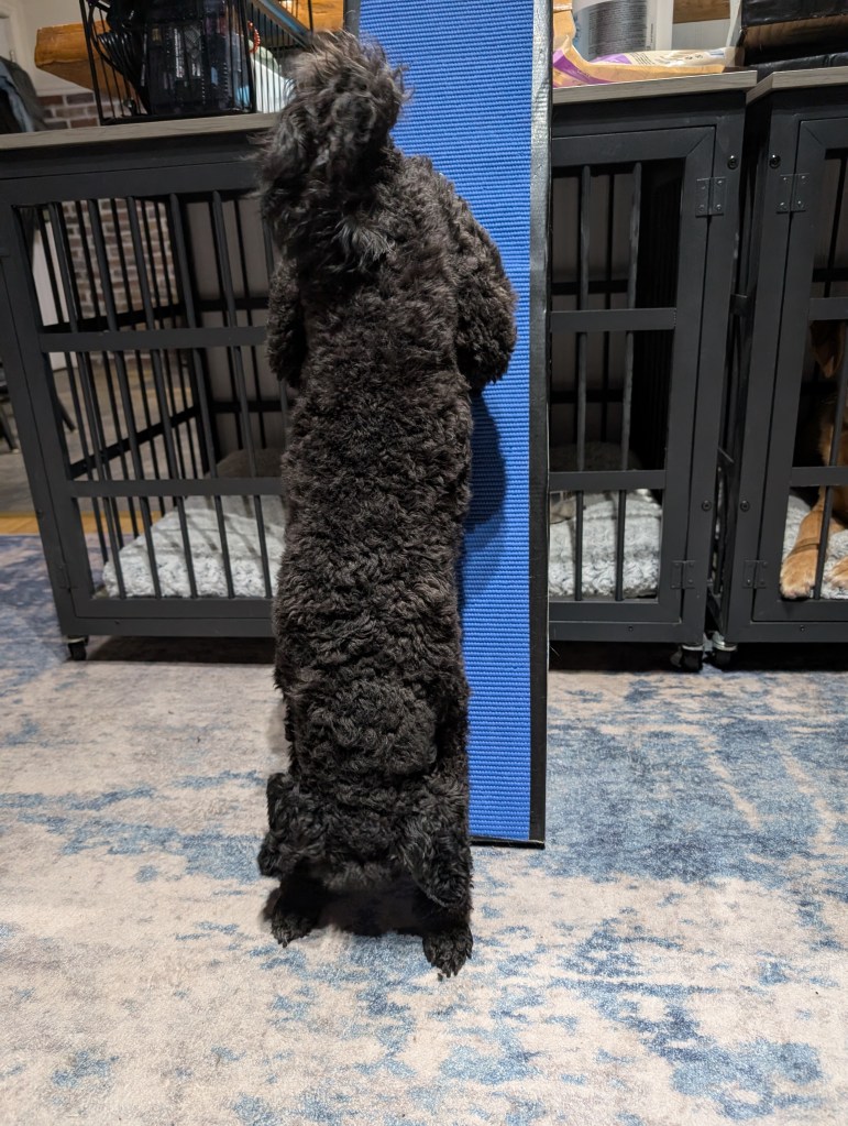 Marty is pure happiness & joy for life. He loves all people & can easily be handed off to work with anyone without any concern. He is dog social & has no idea of his size. His best friend is a 24″ standard & he loves to run with the “big dogs”. He loves to work & problem solve.