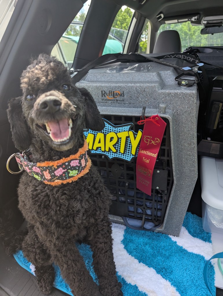 Marty was placed as a fun performance prospect but has really found his drive as he’s matured. He has high food drive & is also praise motivated. He is training in scentwork & agility & I expect to pursue high level titles with him in at least one of these sports.